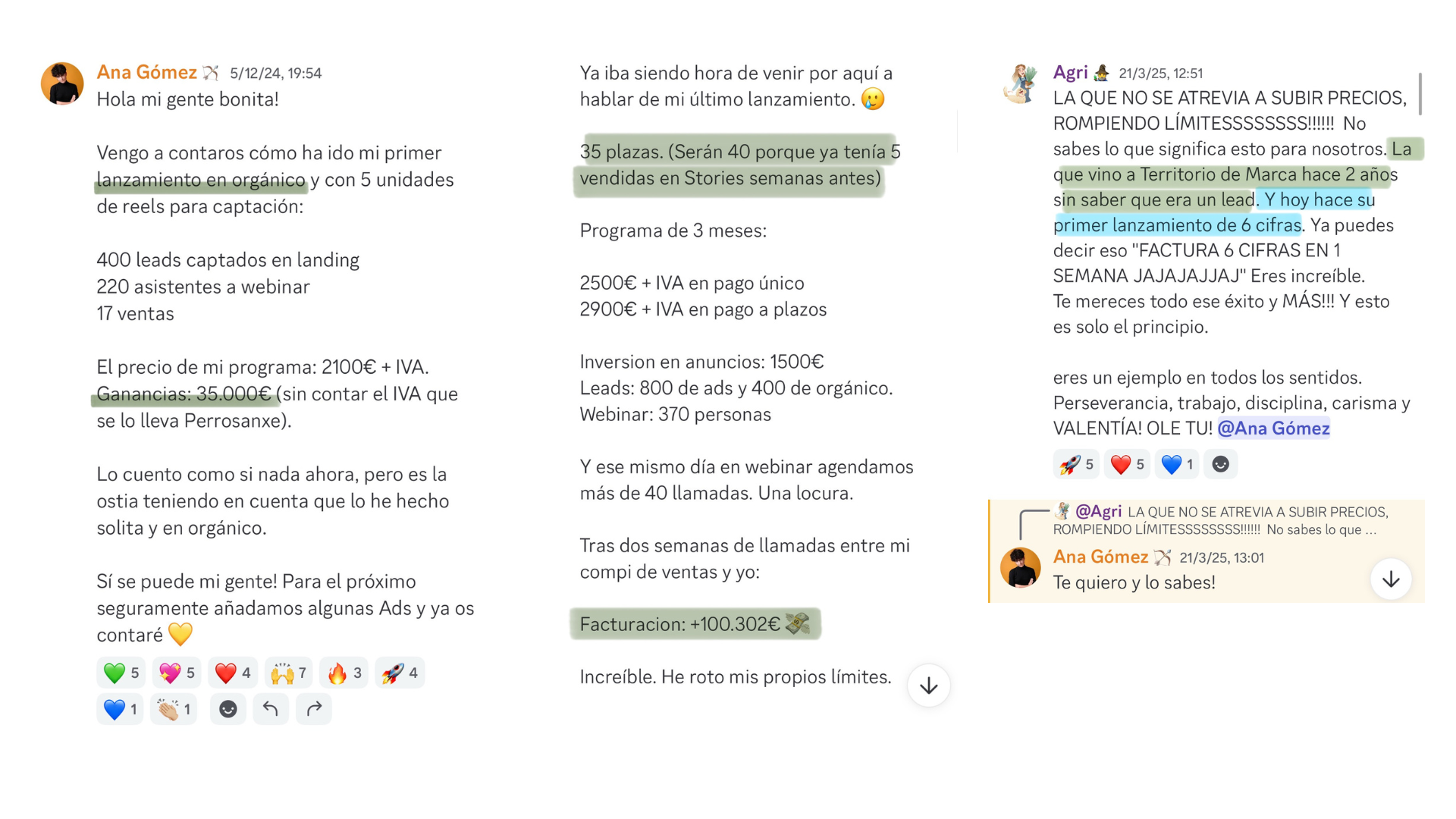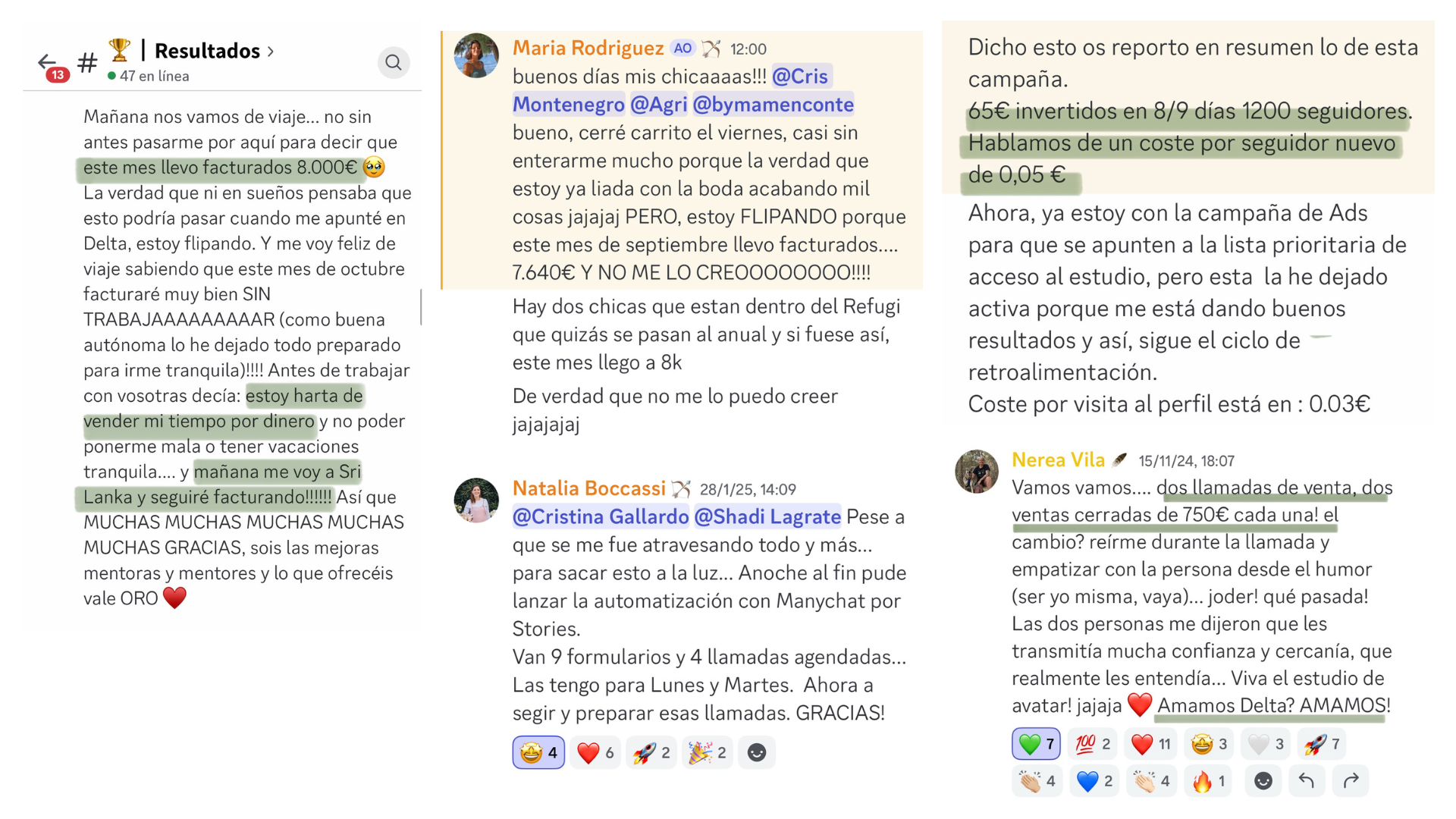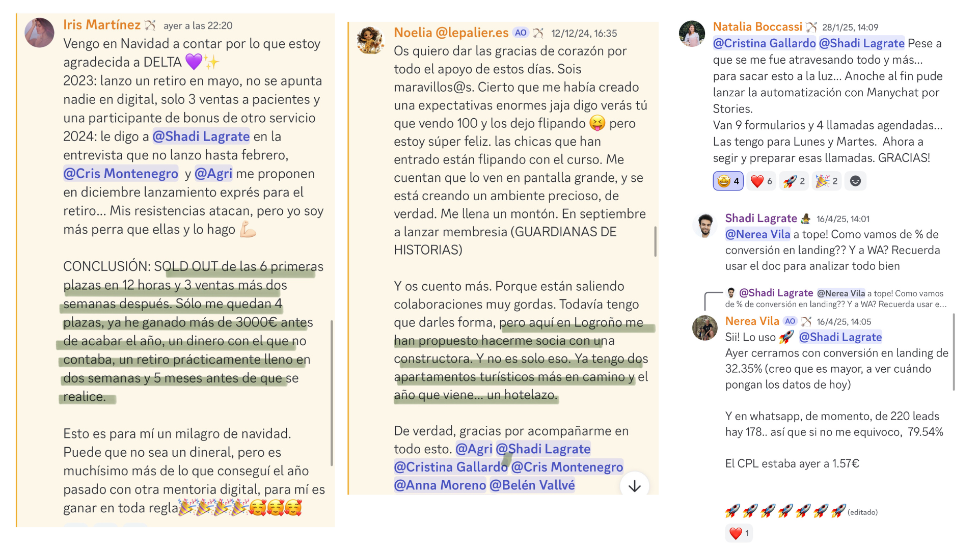 Además de las sesiones grupales, tendrás un canal con el equipo para revisar estrategias, copies, embudos o consultar decisiones importantes.