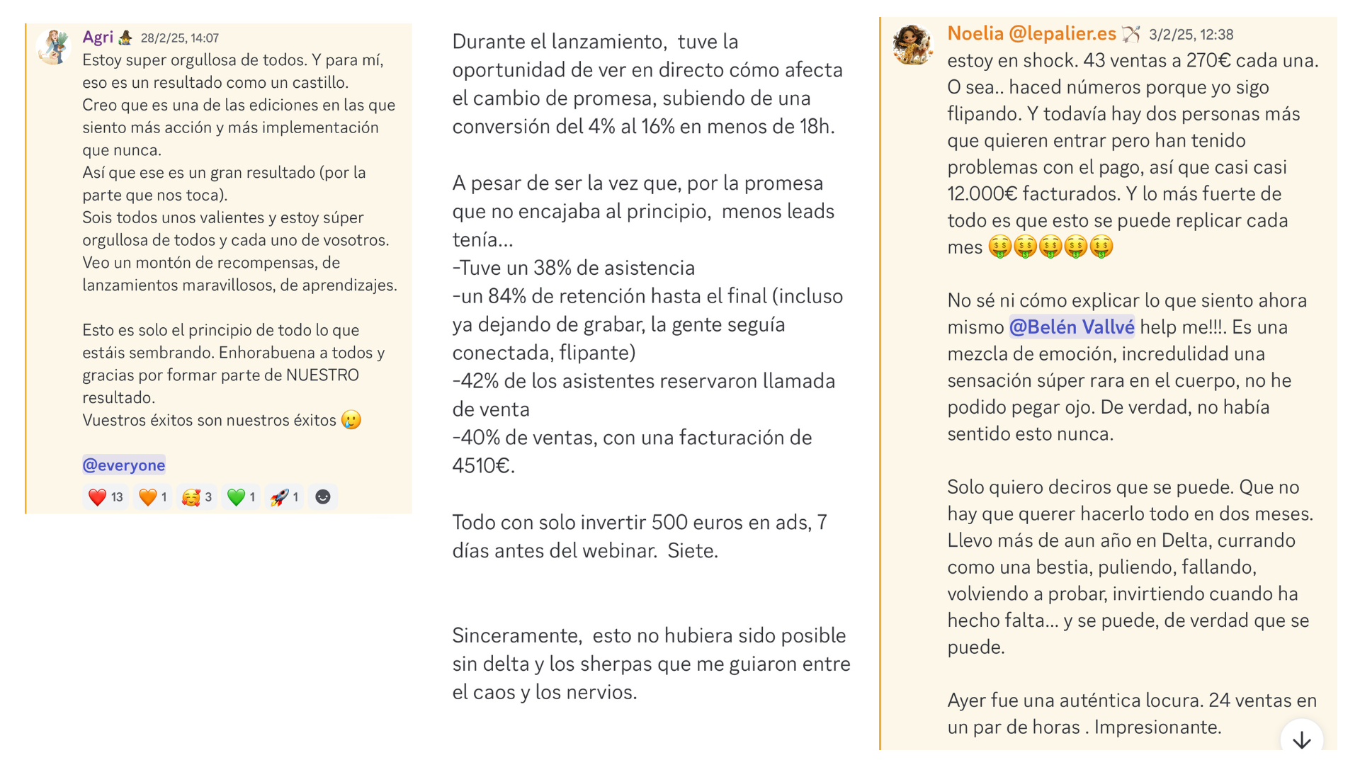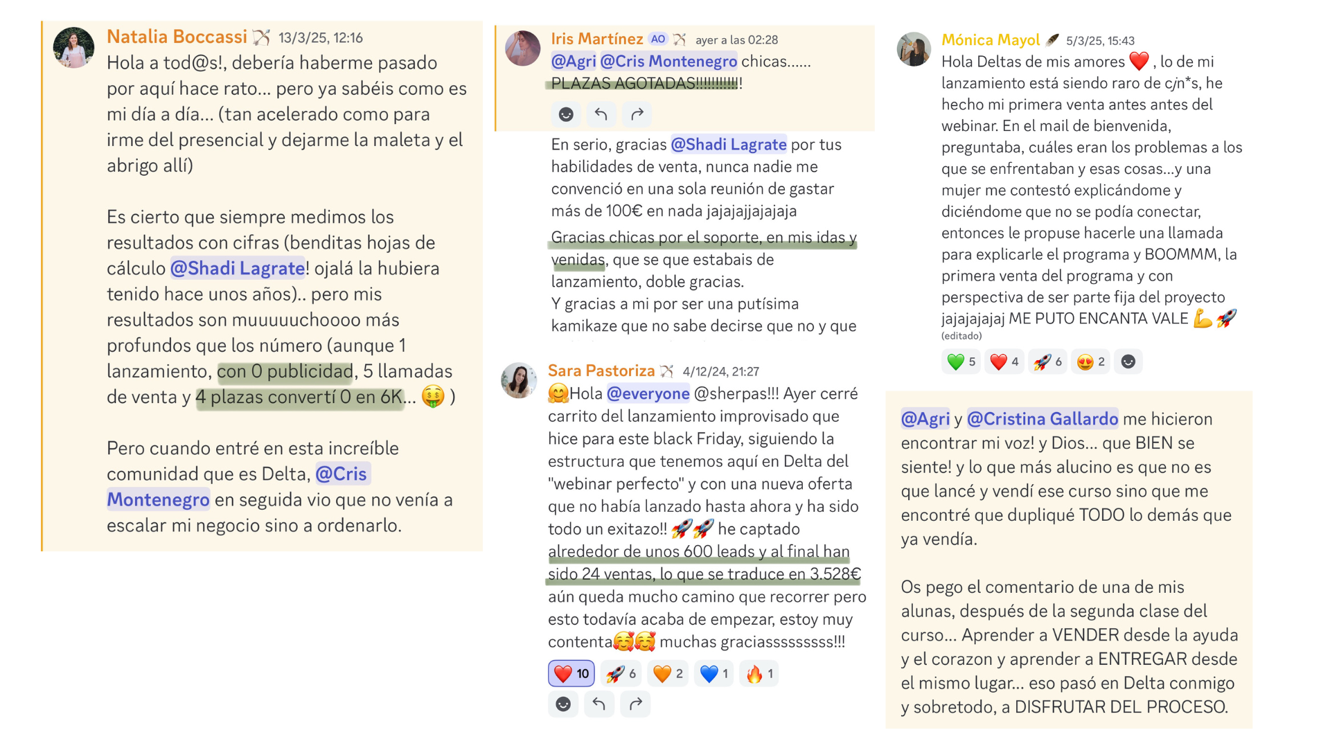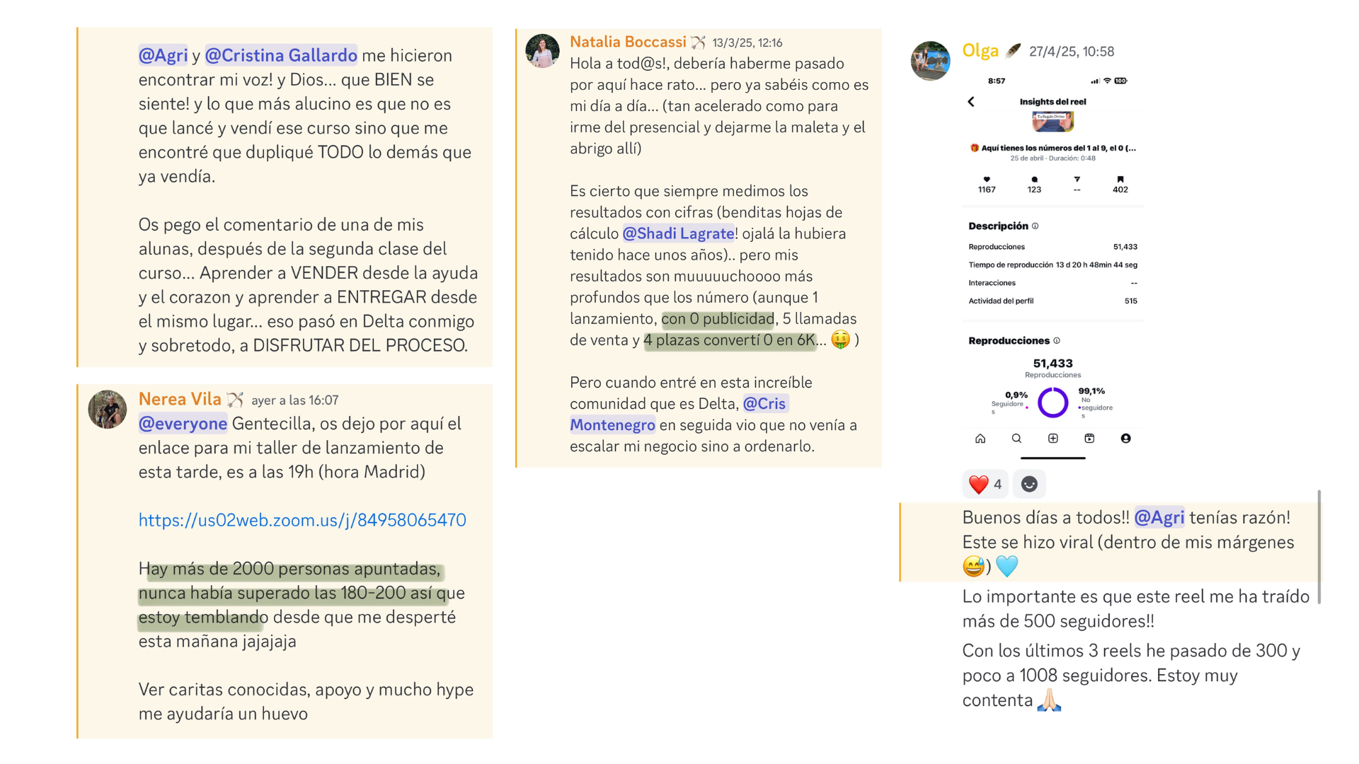 Además de las sesiones grupales, tendrás un canal con el equipo para revisar estrategias, copies, embudos o consultar decisiones importantes.